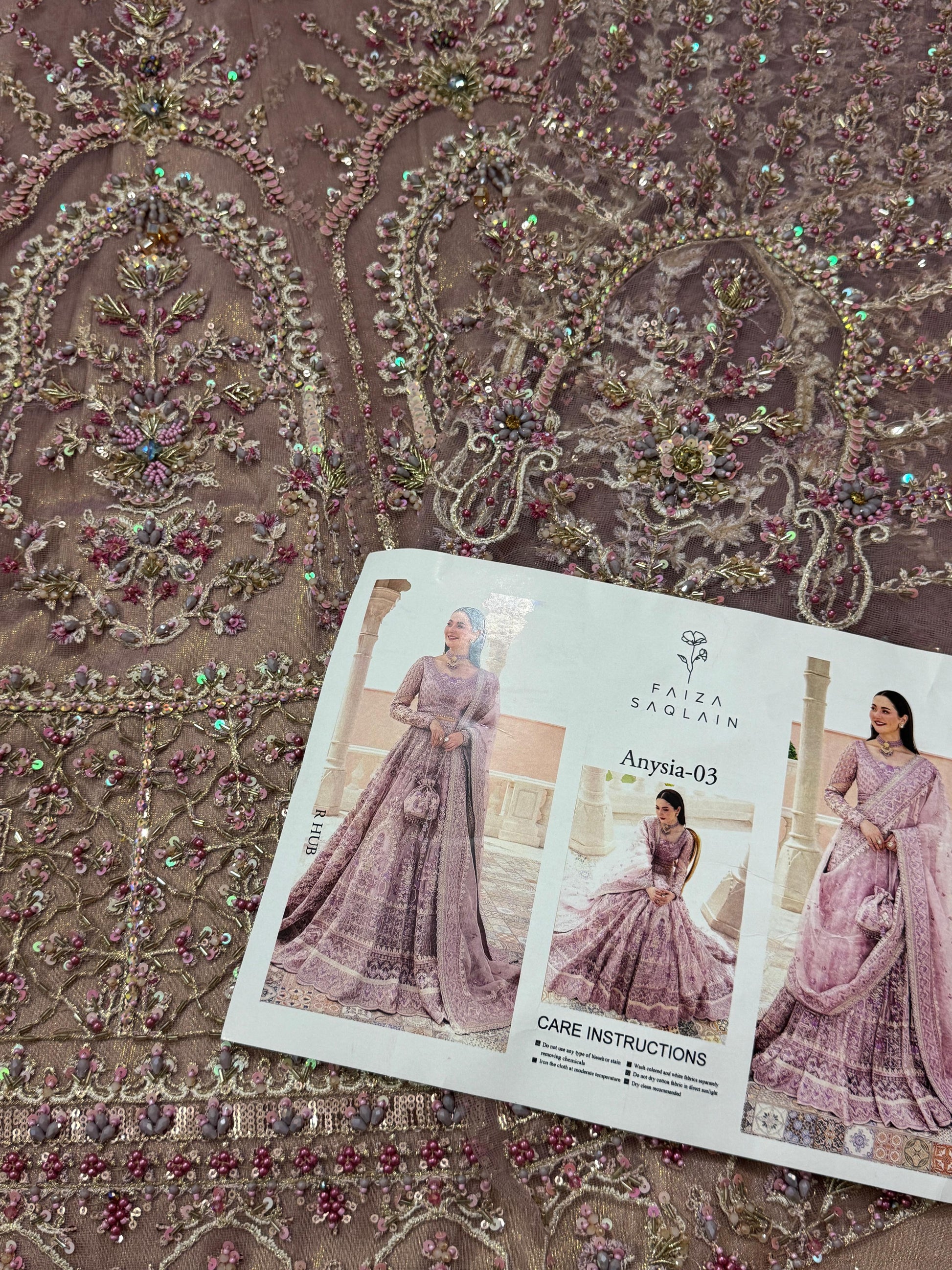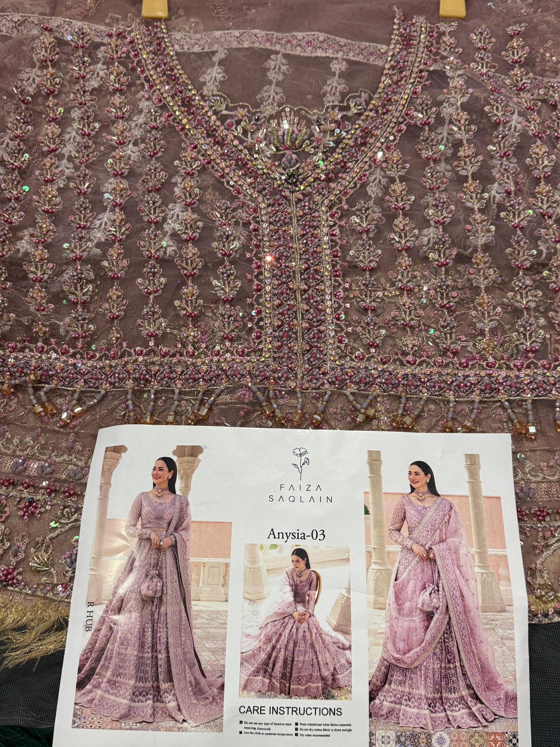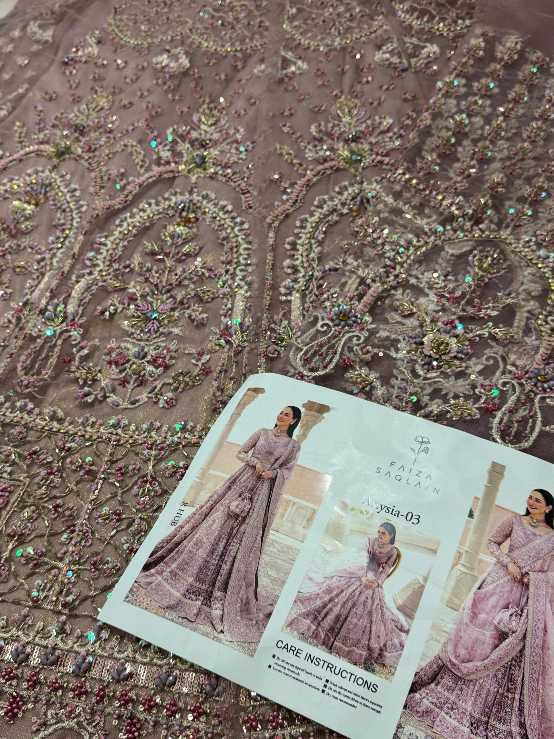 Reflecting timeless elegance, Anysia is a sight to behold. Crafted on delicate lilac net, the lehenga and choli are generously embellished with intricate resham and sequin motifs fashioned in delicate floral patterns. This set is paired with a buttery soft, embroidered organza dupatta making it the perfect festive piece that highlights impeccable artistry and craftsmanship and sets you apart from the crowd.