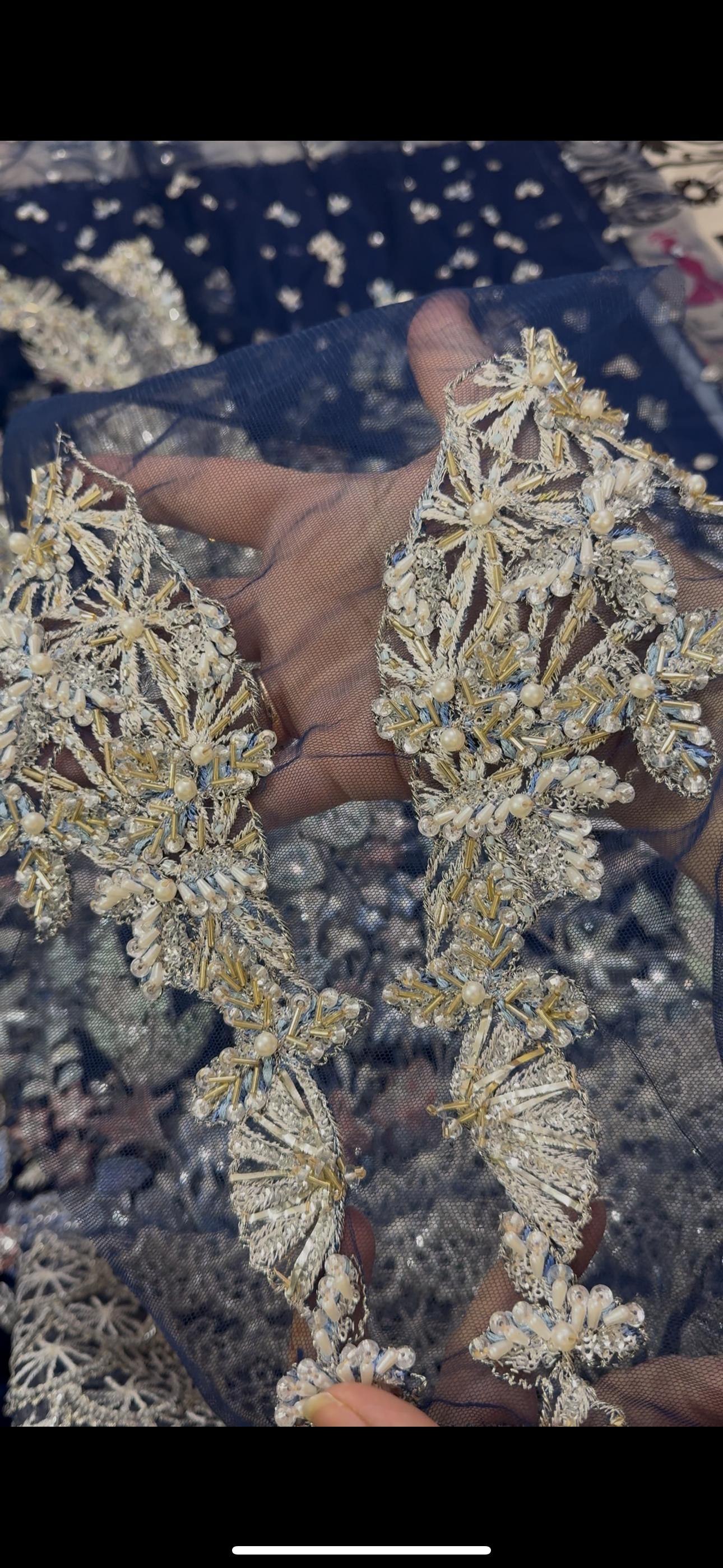 • Embroidered Hand Embellished Front Left Panels A+B (Net) - 2 Pc