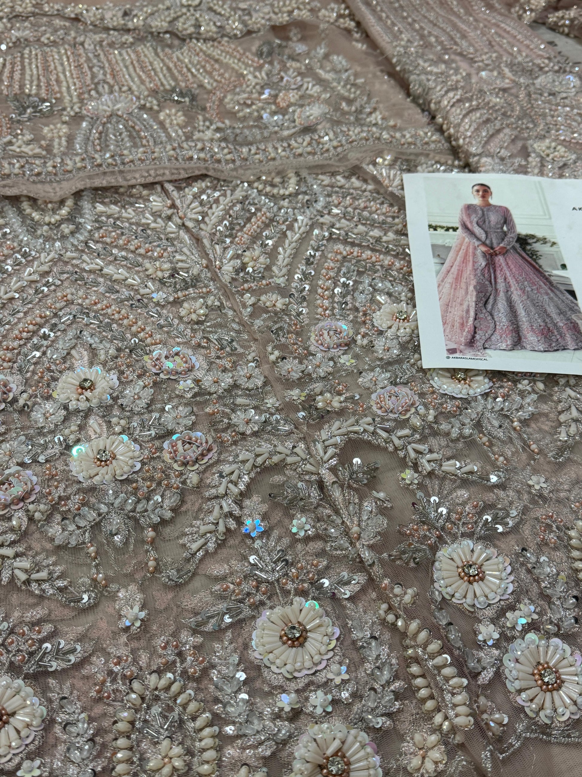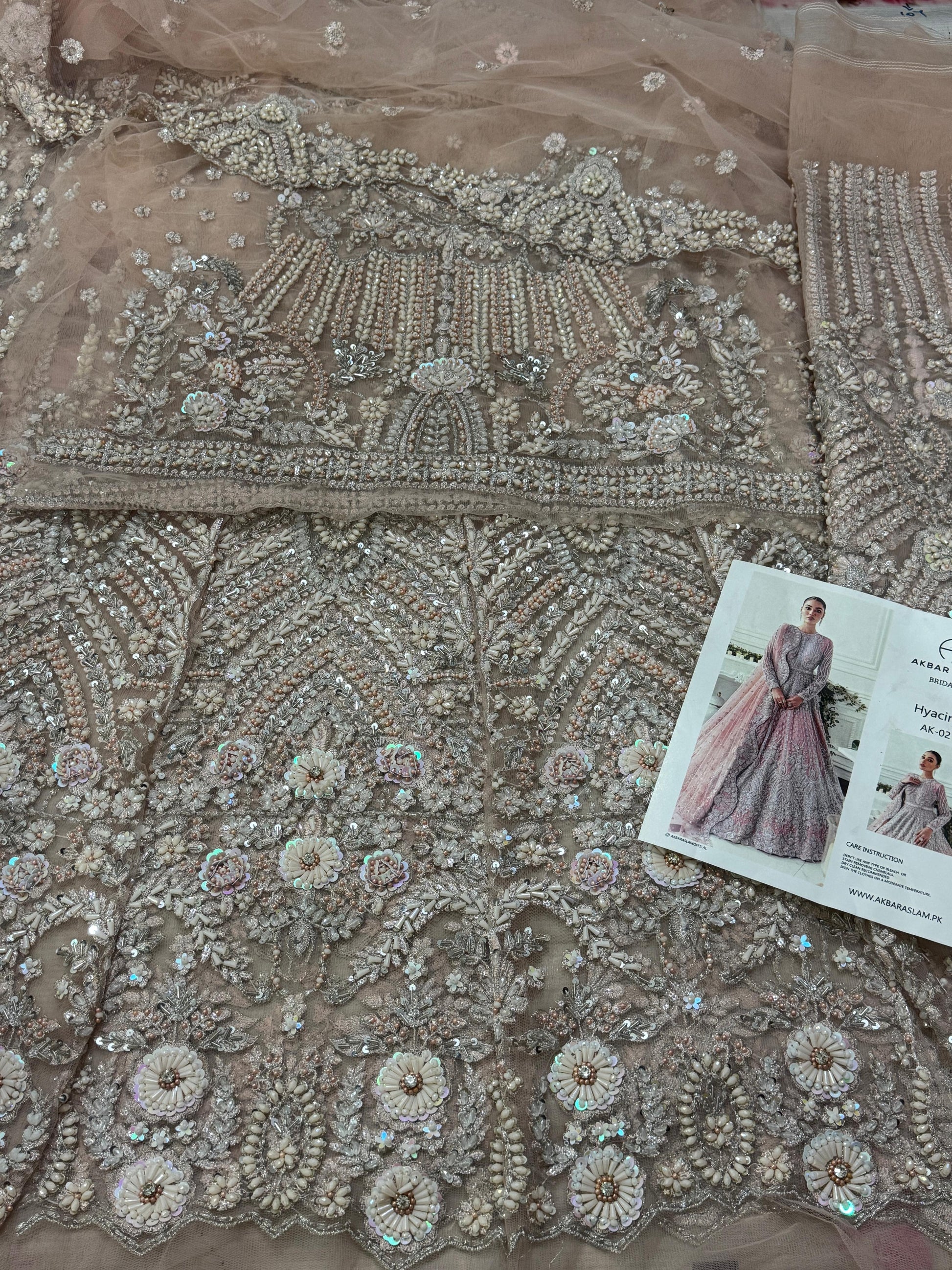 Luxury stones & pearl work Maxi on Net fabric , Ready to wear Duppata With Exclusive four side handmade emablishment .